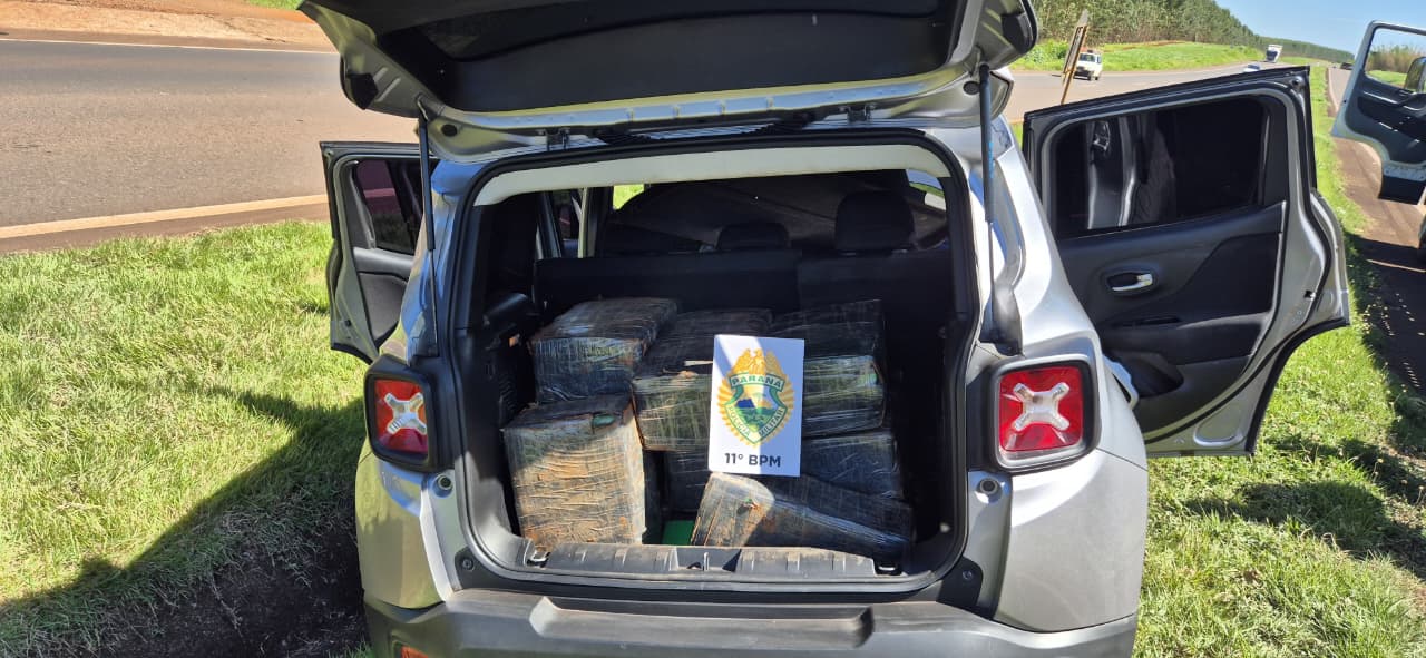 Equipes da Polícia Militar apreenderam na manhã desta terça-feira, 11, um veículo Jeep/Renegade, transportando grande quantidade de drogas pela rodovia PR-317, próximo a Engenheiro Beltrão. A droga, totalizando mais de meia tonelada, saiu de Foz do Iguaçu com destino a São Paulo (SP).