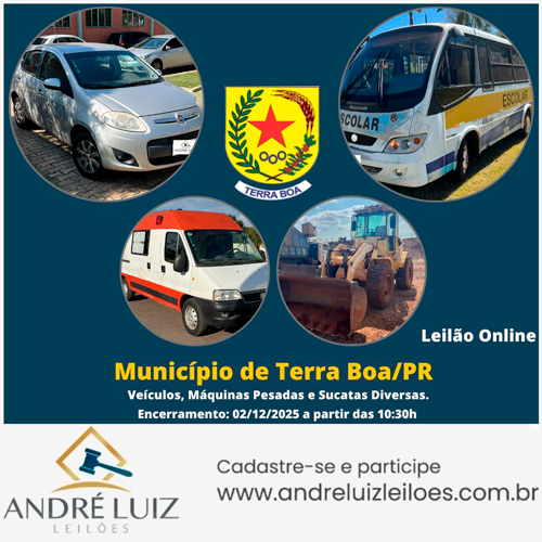 A Prefeitura Municipal de Terra Boa, está realizando até o dia 2 de dezembro de 2025, um leilão público on-line para a venda de bens móveis considerados inservíveis ao serviço público — ou seja, materiais que não possuem mais utilidade ou que não atendem aos objetivos da administração municipal.